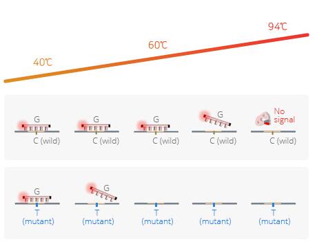 PNA Mutyper:結(jié)合PNA Clamp以及Real Typer技術(shù),基于對(duì)Real-time PCR溶解曲線(Melting curve)分析,高效鑒別突變位點(diǎn)及突變類型。